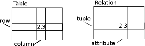 In technical descriptions of relational databases the concepts of