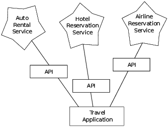 We see many examples of SOA when we use the web. We can go to a single web site and book air travel, hotels, and automobiles all from a single site. The data for hotels is not stored on the airline computers. Instead, the airline computers contact the services on the hotel computers and retrieve the hotel data and present it to the user. When the user agrees to make a hotel reservation using the airline site, the airline site uses another web service on the hotel systems to actually make the reservation. And when it comes to charge your credit card for the whole transaction, still other computers become involved in the process.