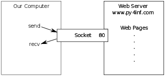 First the program makes a connection to port 80 on the server www.py4inf.com. Since our program is playing the role of the “web browser”, the HTTP protocol says we must send the GET command followed by a blank line.